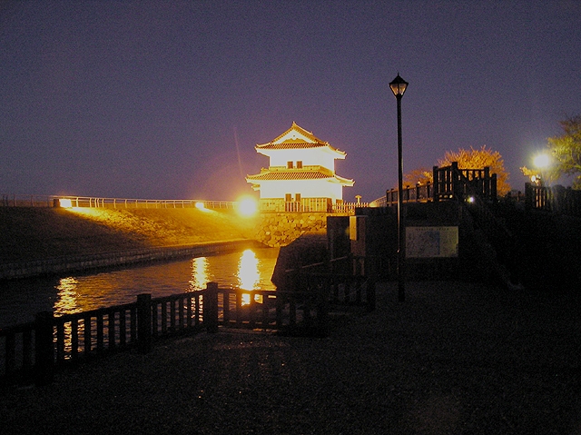 揖斐川の新しいシンボル「河口堰」(提供・桑名市) 空腹感がいきなり襲ってきた。そろそろ、お目当てのうどん屋「歌行燈」へ行くとするか。と、あたりがいきなり、ポッと明るくなった。白壁に黒瓦をいただいた城郭の一部と思われる建物がライトアップされて、浮かび上がったのである。蟠龍櫓。水を司る聖獣である竜が、天に向かって昇る前のうずくまった姿をモチーフして名づけられ、日没とともに、河畔を賑わす瞬間に、はからずも遭遇できたわけである。あわててカメラのシャッターを捺す。モニターで確認すると、それなりの雰囲気をおさめることができたようだ。